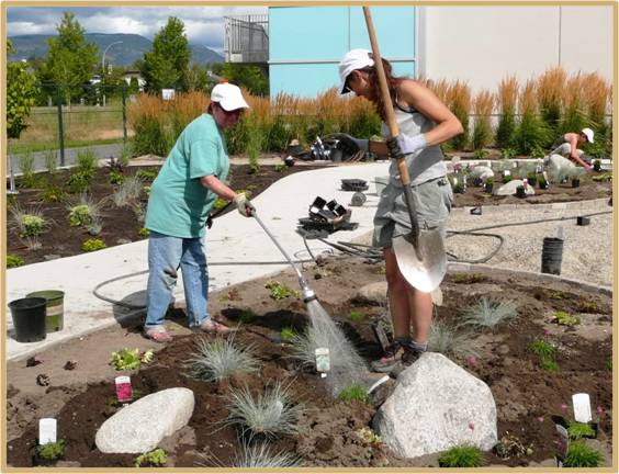 The Okanagan Xeriscape Association planting a demonstration garden at the H2O Aquatic Centre in Kelowna.