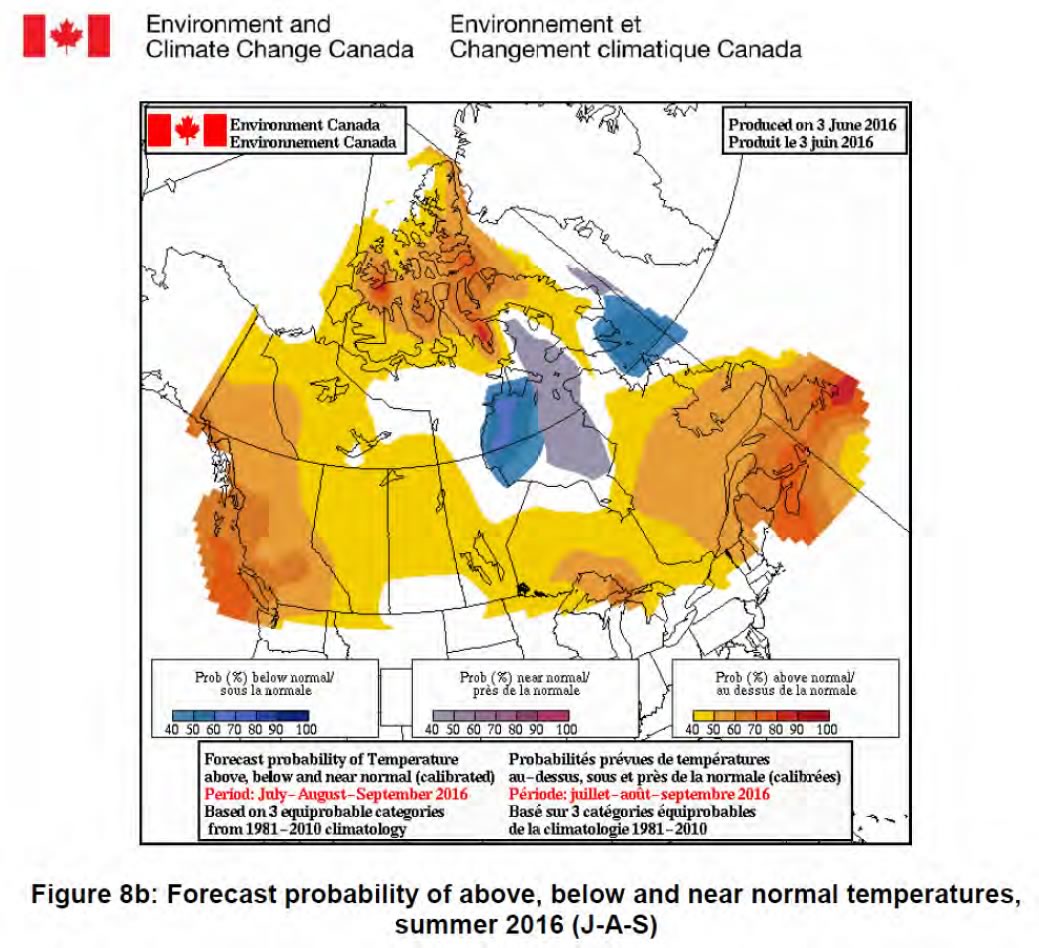 Precipitation in the summer is very difficult to forecast, because often it comes from thunder clouds that form due to local conditions, release a burst of rain, and are gone. Temperature is much more accurate to forecast some time ahead. According to Environment Canada, the forecast is for continuing warmer than normal temperatures this summer. This is from a webinar given by ECCC staff two weeks ago. Warm temperatures will increase evaporation rates.